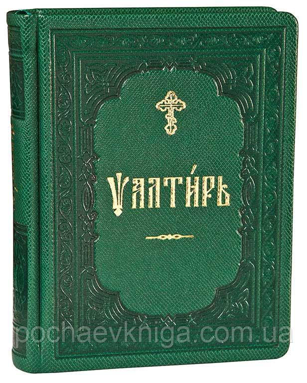 Псалтир церковнослов'янською мовою. Псалми поділена на кафізми, за якими слідують тропарі і молитви. Крім молитов за прочитання кількох кафизм або всієї псалтирі, Последования по виході душі від тіла, в даний видання також увійшов короткий церковнослов'янська словника. Книга виконана з тристороннім золоченням обрізів. Обкладинка прикрашена оригінальним тисненням.